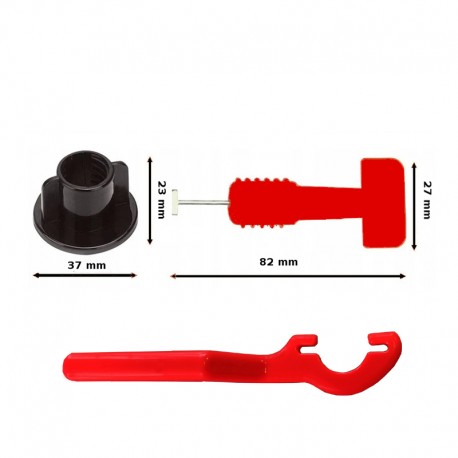Trzymając za górną część, dokręcić nakrętkę przy pomocy klucza dołączonego do zestawu. Siła docisku powinna być dostosowana do rodzaju i grubości płytek/
