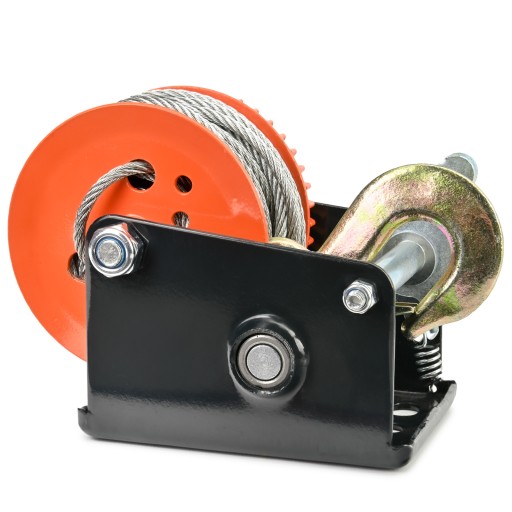 Wciągarka ręczna wykonana z wysokiej jakości materiałów zapewniających jej odpowiednią trwałość i niezawodność. Wyposażona jest w mocny odlewany hak ze sprężyną zwrotną. Sprzęt zapewnia bezpieczne i bezproblemowe wciąganie i opuszczanie przedmiotów.