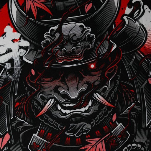 - Nieścieralny nadruk z motywem Samuraja wykonany metodą sublimacji