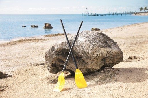 Zestaw dwóch składanych wioseł do pontonów oraz innego sprzętu wodnego. Proste w montażu i demontażu, dzięki czemu można je z łatwością przewozić i przechowywać.