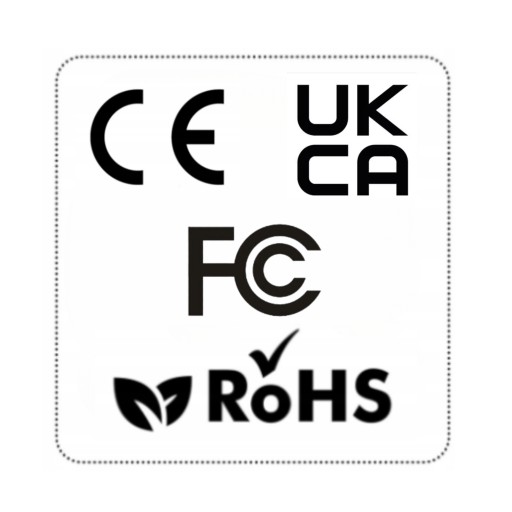 Nasz Power Bank jest dumnym posiadaczem certyfikatów: RoHS, CE, UKCA i FCC.