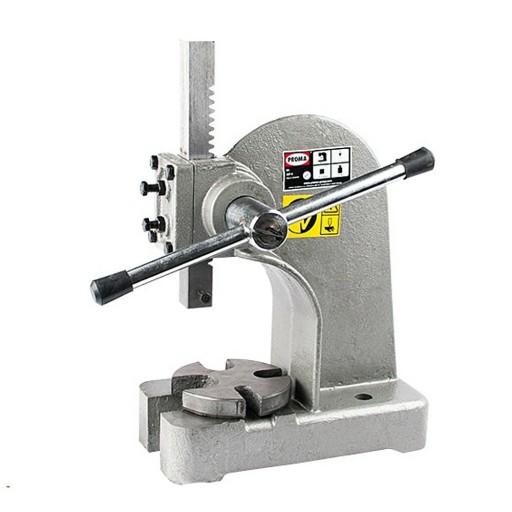 Prasa jest przeznaczona do prasowania łożysk, piast, tulei i części maszyn o podobnym charakterze, do siły nacisku maksymalnie 1 tony. Zbudowana jest z żeliwnego korpusu, stołu i dwóch zębatych elementów, które poprzez dźwignię zapewniają siłę nacisku prasy. Dodatkowy obrotowy stół warsztatowy z rowkami w czterech różnych rozmiarach umożliwia solidne zamocowanie obrabianego materiału.