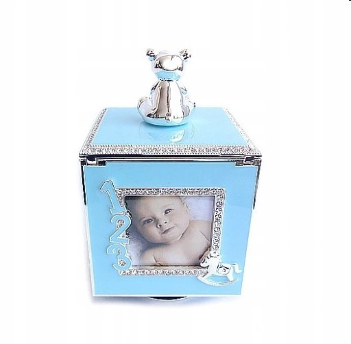 КРАСИВАЯ КОРОБКА С МУЗЫКАЛЬНОЙ ШКАТУЛКОЙ/ДЕНЬ РОЖДЕНИЯ/КРЕЩЕНИЕ/синяя/ МУЗЫКАЛЬНАЯ ШКАТУЛКА/ФОТО