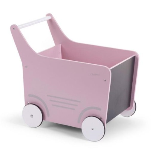 Drewniany wózek-pchacz, który poza fukcją przechowywania zabawek i innych dziecięcych skarbów, może wspomagać naukę chodzenia. Dziecko uczy się utrzymywania równowagi a także utrzymywania porządku. Z czasem Maluch może zacząć kreatywne zabawy na tablicy, która jest na przedniej ściance wózka.