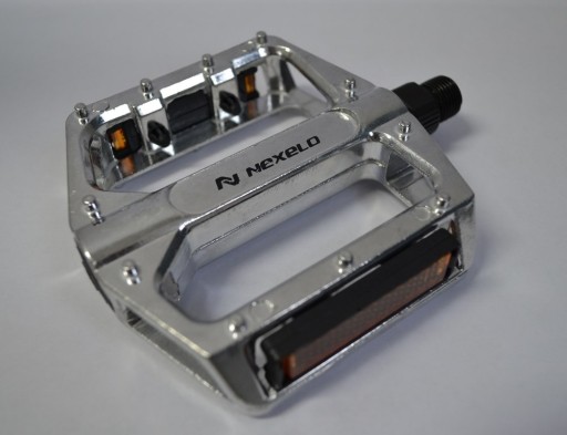 Pedały aluminiowe BMX/MTB, łożyska kulkowe, z odblaskami, wymiary 110 x 100 mm, oś stalowa 9/16 cala, kolor: srebrny