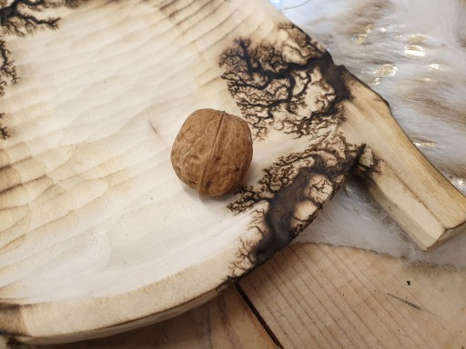 Ręcznie wykonane korytko z drewna lipowego. Korytko jest wypalane prądem, który tworzy wyjątkowy wzór oraz opalane.