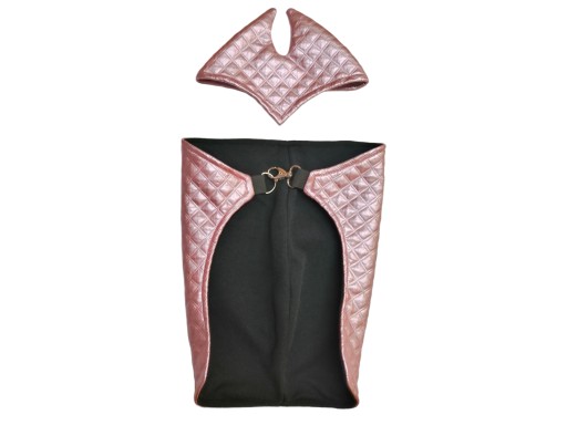 Komplet uszyty z błyszczącej pikówki.