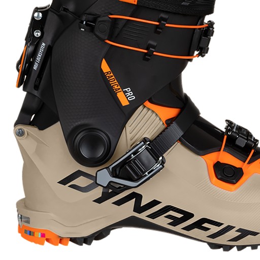 „Wystarczy jeden ruch”: dzięki zastosowaniu opatentowanego systemu Hoji Lock Radical Pro zmienia się na szczycie w solidnego zjazdowca gwarantującego wyjątkowe przełożenie siły na nartę. Inteligentny kablowy system integruje mechanizm z klamrami i Ultra Lock Strap, dzięki czemu w celu zmiany trybu na zjazdowy wystarczy jedynie opuścić ramię z tyłu buta, co doprowadza do zablokowania go pod kątem 11 stopni i przygotowuje na konfrontację z nawet najbardziej agresywnym terenem. Cholewka i skorupa tworzą wtedy jeden całkowicie spójny element. Jest to unikalne rozwiązanie na rynku pozwalające na precyzyjną i efektywną jazdę na najwyższym poziomie, czego normalnie oczekuje się od modeli typowo zjazdowych.