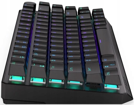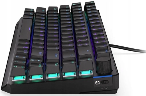 Thock 75% Wireless Red to twardziel jakich mało. Jego wzmocniona obudowa opiera się uszkodzeniom jak najlepszy zawodnik MMA. Z intensywnymi sesjami MMO też całkiem nieźle sobie radzi. Dzięki aluminiowemu topowi konstrukcja klawiatury jest po prostu odporna na uszkodzenia i bardzo sztywna. Poza tym stabilnie trzyma się biurka i nie przesuwa się nawet podczas długotrwałej pracy. Z wyglądem też u niej w porządku – wytłoczone na spodzie wzory i podświetlenie ARGB dodają jej zadziornego charakteru.
