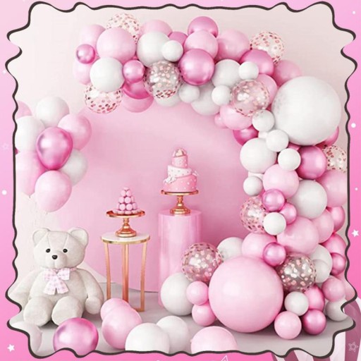 GIRLANDA BALONOWA XXL BALONY BIAŁA RÓŻOWA ROCZEK CHRZEST 105 SZTUK