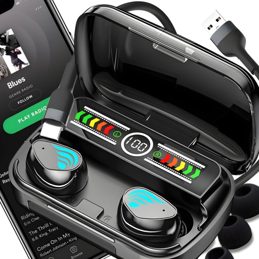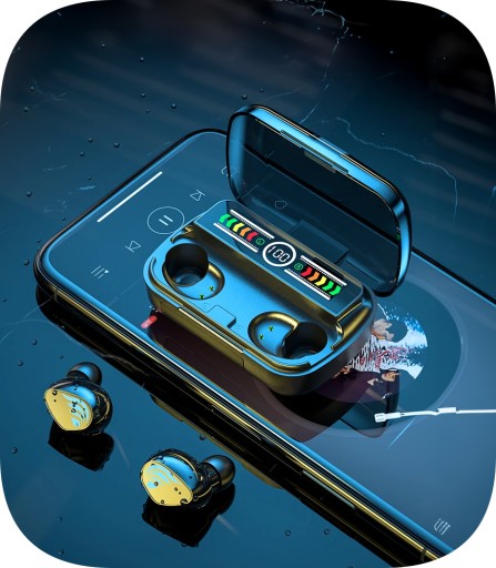 SŁUCHAWKI BEZPRZEWODOWE DOUSZNE BLUETOOTH 5.1 Z MIKROFONEM + POWERBANK
