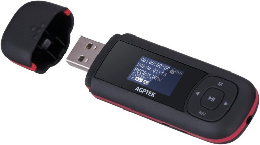 AGPTEK 8 GB przenośny odtwarzacz MP3 USB o przekątnej 1", wyświetlacz LCD, mini odtwarzacz muzyki z FM, nagrywanie, U3, czarny i czerwony