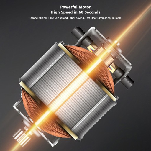 4. Łatwy w użyciu przenośny mikser elektryczny z silnikiem o dużej mocy 150 W to dobry wybór dla każdego entuzjasty gotowania. Dwie głowice mieszające mogą łatwo i dokładnie przeprowadzić głębokie mieszanie i równomierne mieszanie.