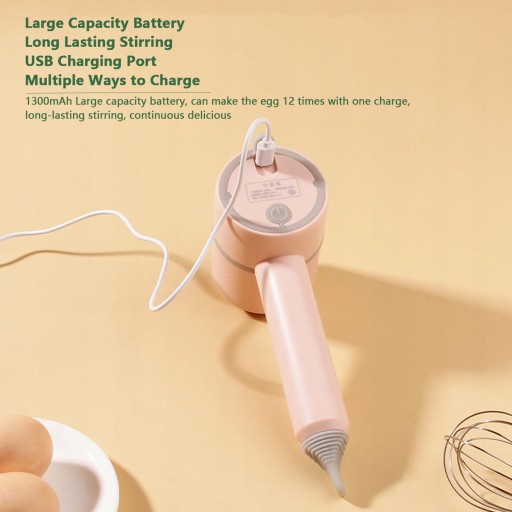 2. Stylowy wygląd i ładowalny, szeroki interfejs USB, można ładować za pomocą adaptera USB, mobilnego zasilacza, komputera itp. Po pełnym naładowaniu może pracować nieprzerwanie przez około 15 razy i zrobić 4 jajka na raz. Ręczny blender elektryczny ma ergonomiczny uchwyt, który zapewnia wygodny chwyt; jednym klawiszem szybkie wysuwanie akcesoriów.