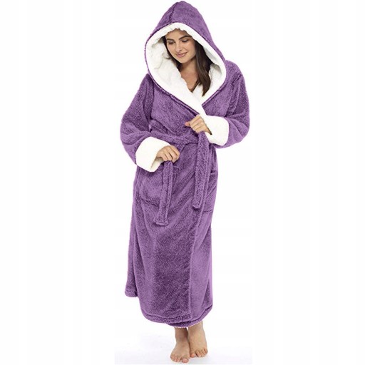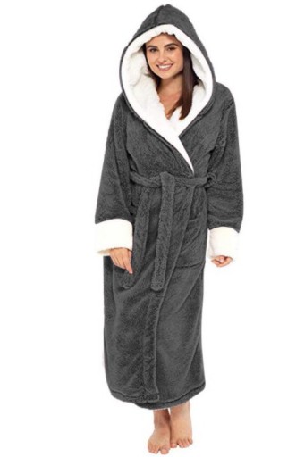 Produkt optycznie zachwyca klasycznym wyglądem. Posiada duży kaptur, pasek w talii oraz dwie kieszenie pozwalające w wygodny sposób schować chociażby telefon oraz inne drobiazgi. Te dodatki bez wątpienia dopełniają ogólną koncepcję przytulnego płaszcza domowego. Produkt odpowiedni jest dla każdego typu sylwetki.