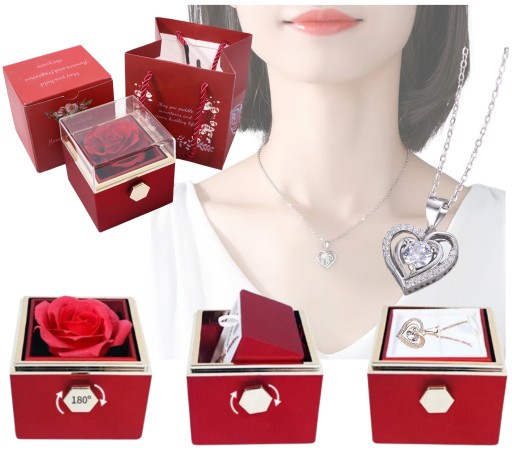 ВЕЧНАЯ РОЗА ВО ВРАЩАЮЩЕЙСЯ КОРОБКЕ ПОДАРОЧНАЯ КОРОБКА НА ДЕНЬ МАТЕРИ + ОЖЕРЕЛЬЕ