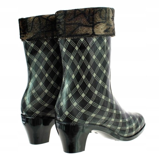 - Cholewka ozdobiona wzorem w kratkę, na stabilnym słupku.