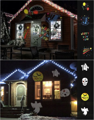 - Projektor zastępuje tradycyjne oświetlenie świąteczne domu z zewnątrz lub wewnątrz
