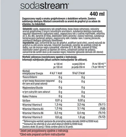 Przygotuj w kilka chwil pełen cytrusowego orzeźwienia, dietetyczny napój grejpfrutowy! Syrop Zero Pink Grapefruit nie zawiera cukru, aspartamu ani kalorii! A jedna butelka pozwala stworzyć aż 9 litrów pysznego napoju gazowanego.