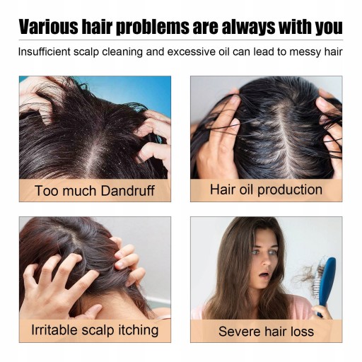 Funkcja:1. NAWILŻANIE WŁOSÓW: Peeling oczyszczający skórę głowy nawilża suche włosy i oczyszcza skórę głowy, zapewniając zdrowsze i bardziej lśniące włosy.