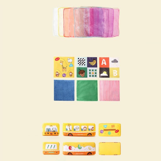 Różne tekstury: 8 chusteczek z gazy, 3 chusteczki do rąk i zabawne pluszowe pudełko na chusteczki w kreskówce angażują malucha w zabawną i ekscytującą zabawę, zapewniając mu rozrywkę, radość i ukojenie