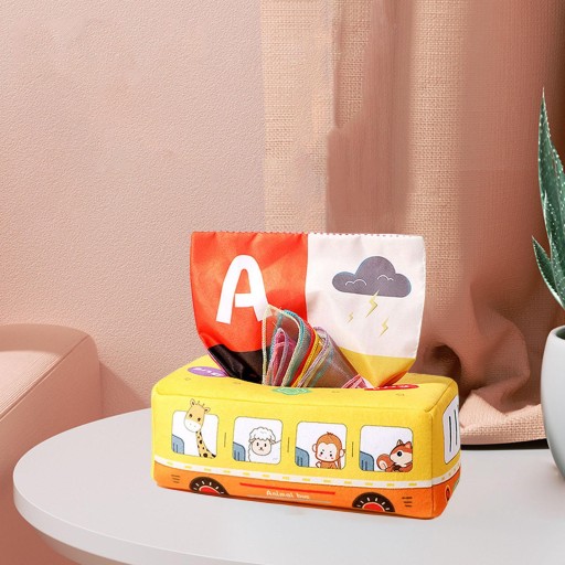Pluszowe Pudełko Na Chusteczki Z Gazy Dla Noworodków Z Zabawkami Sensorycznymi 6-12 Miesięcy Autobus Szkolny