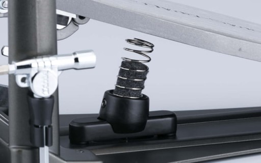- Speedo-Ring TAMA wyeliminowała inne źródło tarcia, zastępując tradycyjną nylonową krzywkę kołyskową Speedo-Ring, krzywką wahliwą z wysokiej jakości wbudowanym wahaczem kulkowym. Quick-Hook pozwala nie tylko na łatwe ustawienie, ale zapewnia także szybki demontaż, dzięki któremu można umieścić stopkę w twardym futerale bez zdejmowania bijaka.