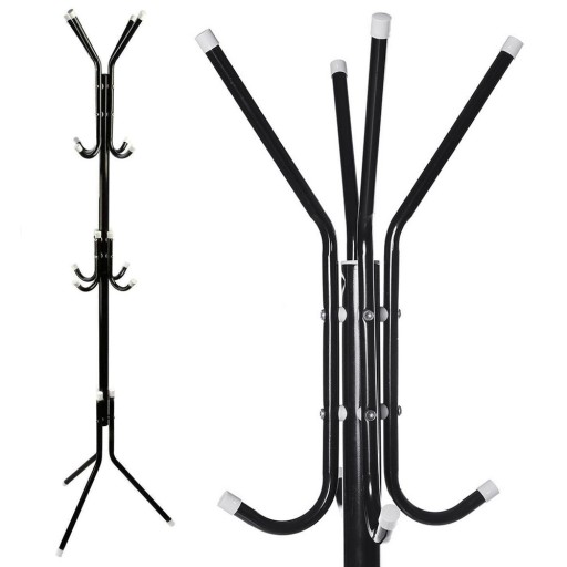 - Zaprojektowany z 12 haczykami wyposażonymi w plastikowe osłony, ten wieszak stojący jest idealny do organizacji dużej ilości ubrań. Osłony zapobiegają uszkodzeniom materiałów oraz ochraniają podłogę przed zarysowaniem.