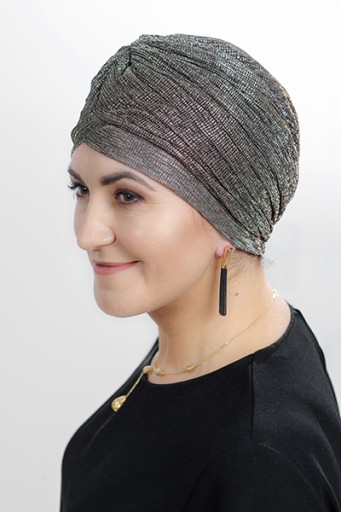 Turbany z pięknych błyszczących , mieniących się tkanin.