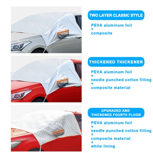 – Chroń samochodu przed deszczem, mrozem, śniegiem, promieniami UV, pyłem, może być używany jako osłona śnieżna zimą i osłona przednich szyb latem, trzyma liście z dala od samochodu jesienią.