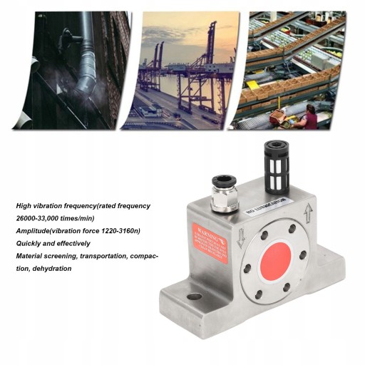 3. SILNE WIBRACJE: Ten wibrator jest zasilany energią pneumatyczną, o wysokiej częstotliwości drgań (częstotliwość znamionowa 26000-33 000 razy / min) i amplitudzie (siła wibracji 1220-3160 N), może szybko i skutecznie przekształcić przesiewanie materiału, transport, zagęszczanie, odwodnienie i inne wymagania procesowe