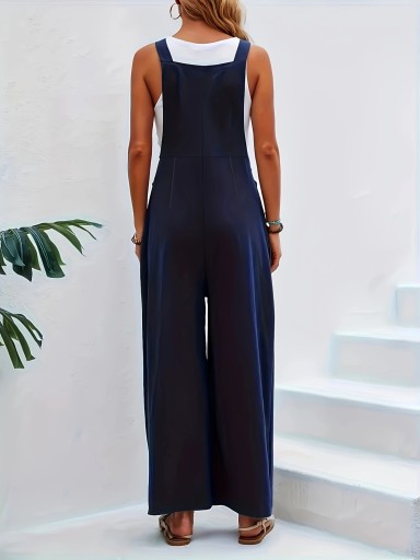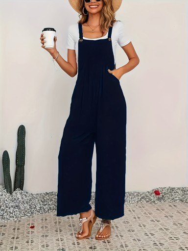 Накладной комбинезон с карманами и пуговицами на весну и лето.