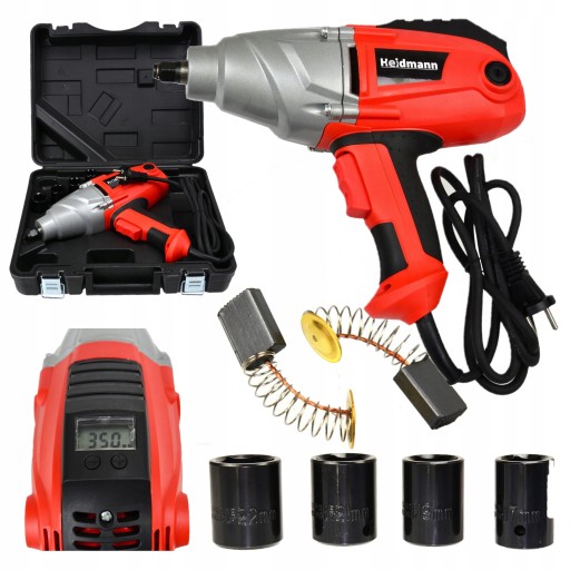 ⭐ Elektryczny klucz udarowy 1/2" z miernikiem LCD, w zestawie z nasadkami CrV 17, 19, 21, 22mm.
