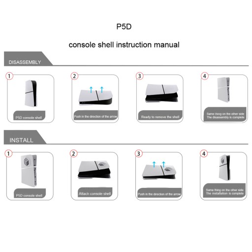 Łatwa instalacja: pod niezabezpieczonym rogiem ochronnym, który znajduje się logo PS5 Slim, i zwolniony okrągłą klamrę. PS5 Slim Pchnij pokrywę w dół w części głównej konsoli, a pokrywa się zsunie. Dopasuj podstawową pokrywę do otworu w płycie głównej, wciśnij ją do góry konsoli, a klamra będzie mogła zostać dokończyć mocowanie.