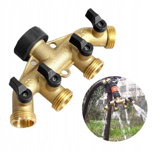 Kolektor przekształca kran w cztery źródła wody, możesz osobno regulować przepływ wody, co ułatwia nawadnianie.