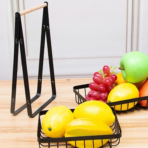 - Przydatny i stabilny: Dwupoziomowa konstrukcja zapewnia efektywne przechowywanie owoców, a solidność wykonania gwarantuje stabilność kosza. Drewniany uchwyt ułatwia przenoszenie.