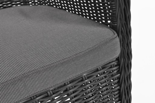 ✔️ Pokrycie fotela zrobione jest z czarnego okrągłego technorattanu. Splot jest gęsty i mocny, a grube włókna tworzą efektowny koszykowy wzór.