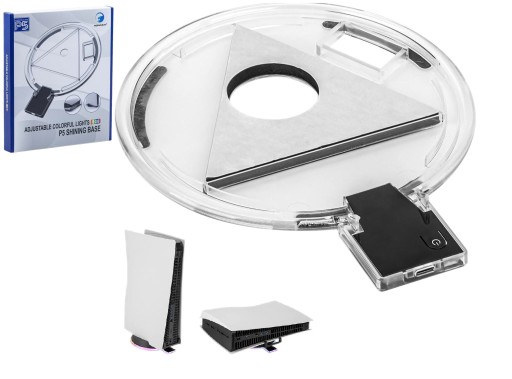 Świecąca podstawka pod PS5, to akcesorium, które można umieścić pod konsolą PlayStation 5, aby dodać elementy oświetlenia LED w różnych kolorach. głównym celem bazy jest dodanie estetyki i personalizacji do Twojego zestawu gamingowego.
