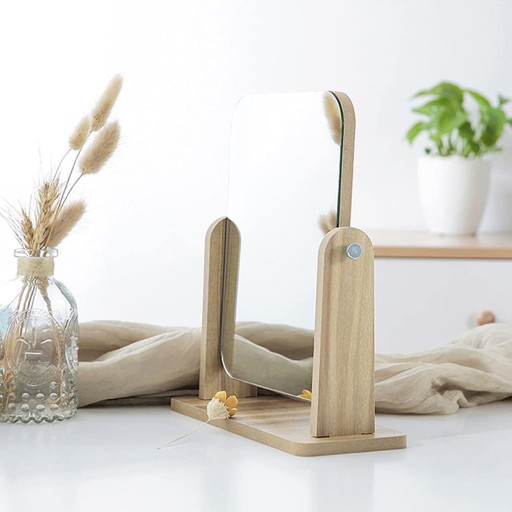 drewniane lustro na biurko ze stojakiem wysokie przezroczyste prostokątne lustro wolnostojące