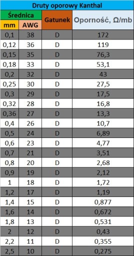 Druty oporowe typu Kanthal D nadają się do naprawy lub budowy grzałek, zgrzewarek, jako druty grzejne w papierosach elektronicznych, w urządzeniach do cięcia itp.