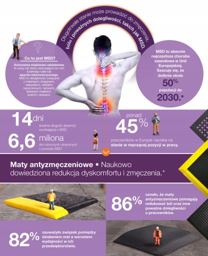 Uniwersalna mata została zaprojektowana z myślą o pracownikach, którzy wykonują pracę stojącą. Dzięki swoim właściwościom pozwala na poprawę komfortu pracy co przekłada się na polepszenie samopoczucia pracownika oraz zwiększenie jego efektywności.