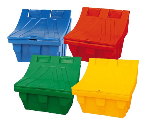 - Wysokiej jakości polietylen sprawia, że pojemniki są odporne na uszkodzenia mechaniczne i zmienne warunki atmosferyczne