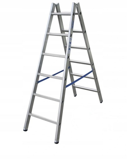 Profesjonalna aluminiowa drabina wolnostojąca ze szczeblami połączonymi wpustowo z podłużnicą, metalowymi przegubami połączonymi śrubami, zapewniająca maksymalną stabilność. Opis: