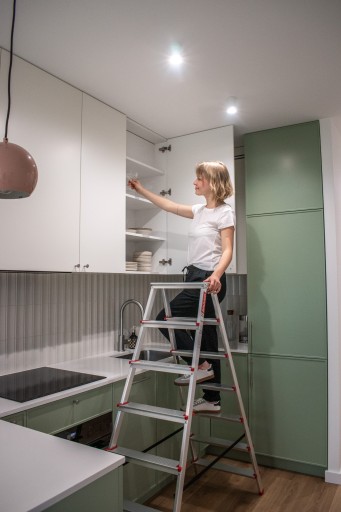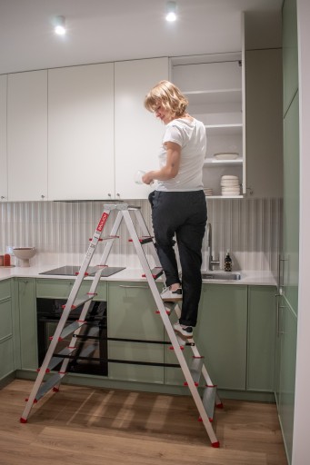 Zawiasy wykonane z ocynkowanej stali zapewniają długowieczność i niezawodność. Dzięki temu rozwiązaniu możesz szybko i wygodnie składać oraz rozkładać drabinę, oszczędzając czas i wysiłek. Kompaktowe wymiary po złożeniu ułatwiają transport i przechowywanie drabiny nawet w małych przestrzeniach, takich jak kuchnia czy spiżarnia.