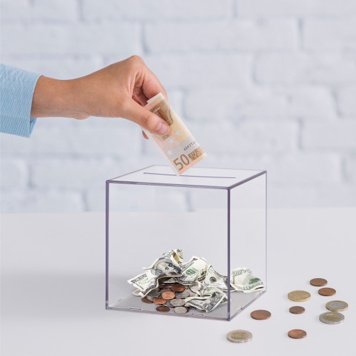 - PRZEJRZYSTY - w przezroczystym skarbcu widać dostęp do zasobów. Może pomóc w kontrolowaniu wydatków i wyeliminowaniu marnotrawstwu. Wrzucanie pieniędzy do znaczenia zachowanego, aż się stłucze.