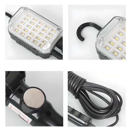 Lampa warsztatowa została wyposażona w uniwersalny i mocny uchwyt magnetyczny, który bez żadnego problemu przyczepisz do samochodu czy innych metalowych powierzchni. Właściwości połączenia magnetycznego sprawią, że będzie można dowolnie obracać lampą, aby świeciła dokładnie tam gdzie tego potrzebujesz. Ukryty hak z kolei przyda się do zawieszenia lampy w miejscach, w których brakuje metalowych powierzchni.