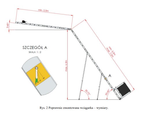 *silnik wciągarki wyposażony w linę o długości 12 m