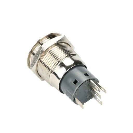 Wandaloodporny metalowy przycisk z podświetleniem pierścieniowym. Średnica otworu montażowego 19 mm.