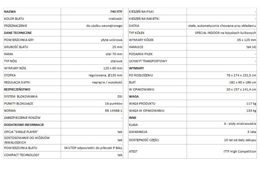 - Powierzchnia blatu: SKILTOP - odpowiedni do piłeczek P-Ball