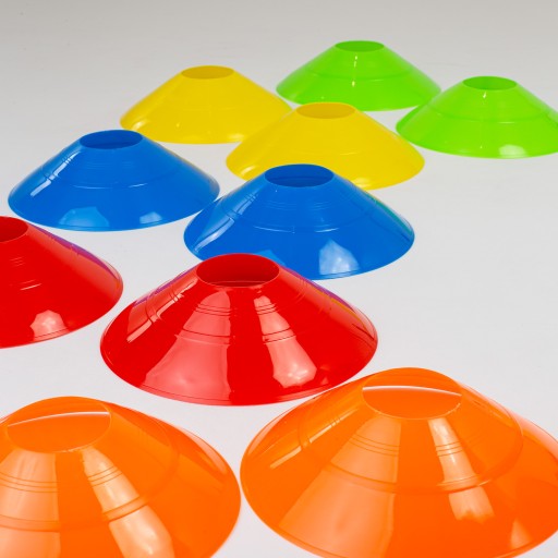 - 50 sztuk – 10 sztuk z każdego koloru to szerokie możliwości wyznaczania miejsc na danym obszarze treningowym.